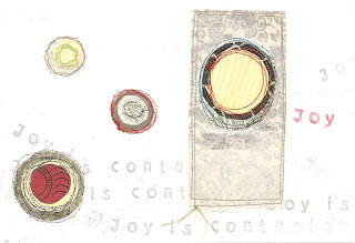 This summer I made a bunch of paper circles from fun, wacky papers (Buzz Lightyear may or may not have been included in this project – To infinity and beyond!) Cleaning up the studio, I decided I should make them into happy cards …. here is the first. A reminder to myself that joy is catching, and a way to share it with those around me.