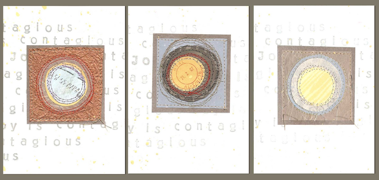 Been enjoying putting together these cards. Went to the Kelsey museum over lunch and enjoyed a display of glass from from 100 BC to 100 CE. One decorative piece was gray with charcoal, cream, yellow, and red circles and I was reminded just how much life cycles. And yet, we each add our own piece, a piece only we can add, to the whole.