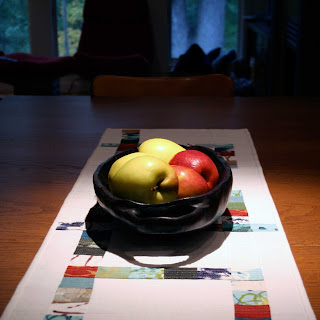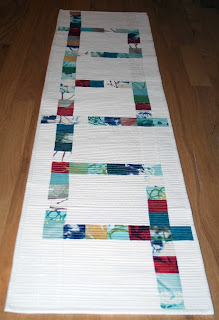 I’ve been enjoying the process of laying out, sewing, and quilting this table runner, and it is finally finished! Yeah! I was aiming for a contemporary, beachy feel and I think it works. The first quilting was about 1/2″ apart, and the shadows were too strong, so I doubled the stitching, and now the shadows simply become an overall pattern. Early summer at the beach, just looking at it makes me smile.