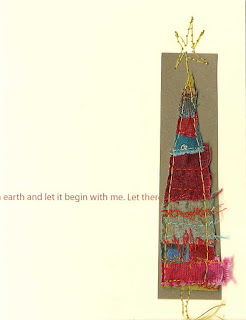2012 has been about freeing my creative spirit, partly by going back to basics. I collaged fabric scraps from a vibrant palette along with free motion quilting to create this tree art, embracing the process simply because I enjoy it.