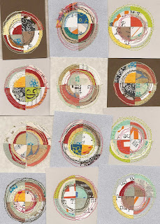 A few weeks ago before Taylor’s winter break, we needed a change of pace, so I got out some fun paper, scissors, and glue and Taylor and I enjoyed some collage work. Good to work out the kinks in your brain after heavy-duty studying. Somehow creating small pieces always relaxes me. Got around to sewing them today while Taylor is in Rome. (You can see her influence in the vibrant greens and aqua paired with coral.) A little foretaste of spring.
