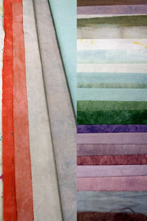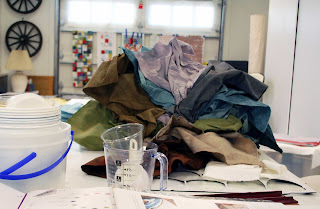 I’ve been dyeing fabric more this week, after my start this weekend. Its been fun, but its also been a journey. The first batch had an undetermined problem with the cobalt blue. Here it is after the next batch of keeping, printing, over-dyeing, and dyeing some more…
