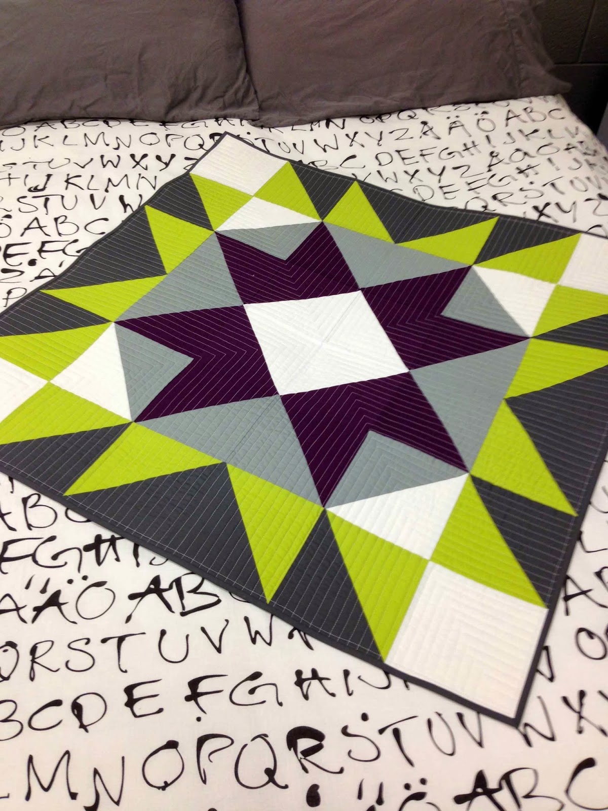 Kelsey’s college house this year is lovely. 100+ years old, great bones, large living spaces. And very WHITE! She and her housemates have decorated their rooms, creating comfortable spaces, but they didn’t have many items left over for the common space. I decided I could do a simple quilt, almost a single block, in solids, to add color to the walls. Quick trip to Pink Castle, helpful color advice, and here is the final product!