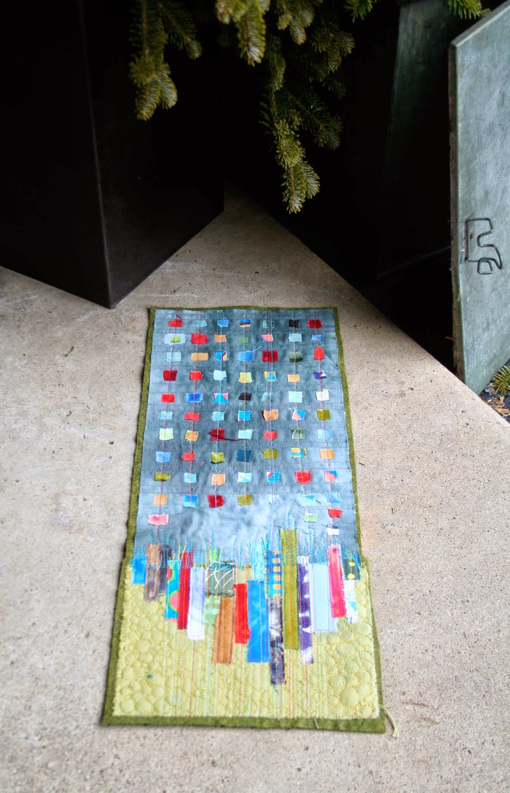 I made a small sample door quilt, but the first three quilts were languishing on the design board, and in the meantime I had drawn a design while listening to a workshop on grant-writing. “Wisdom: shoots and branches” was the next to be completed. Creating this quilt, I just kept powering through (not overthinking can be a good thing for me), and finished it within weeks.