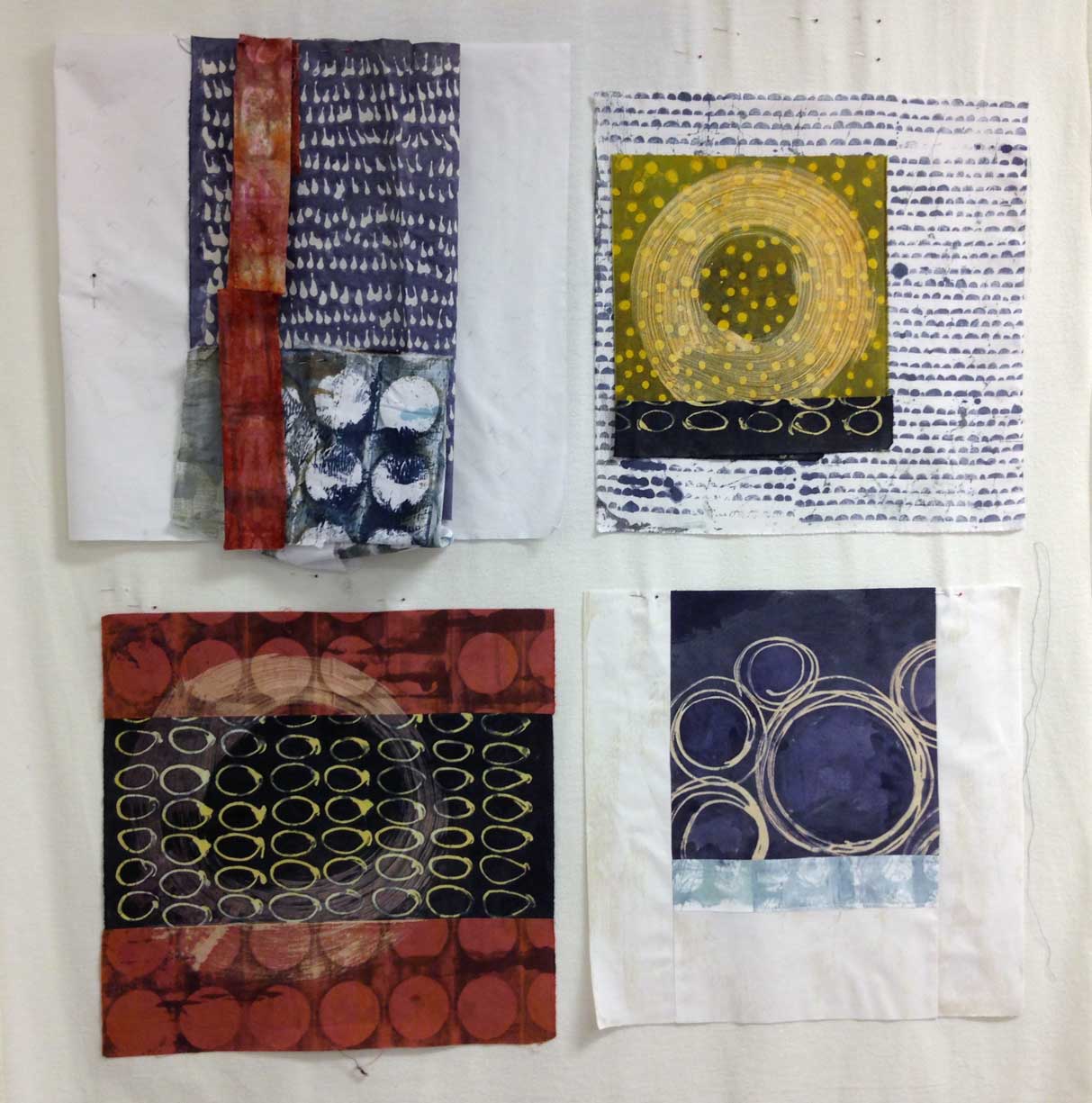 I wasn’t exactly sure what I might do when Lent started on Ash Wednesday. However, I’m really trying to create just for fun. So, I pulled a set of fabrics I liked from my collection of hand dyed and printed fabrics. I needed more low volume fabrics and fabrics with bigger patterns, so I mixed up dye and started in. The fabric on the right with the subtle khaki brush pattern is from the first set of printing.
