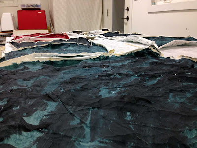 The matchstick quilting on the white edges allows the subtle gray X marks to show up just a little. In the end, my stitching was fairly conservative, but I like how the piece worked out.It has a rusty, water, minimal infrastructure influence that I enjoy.